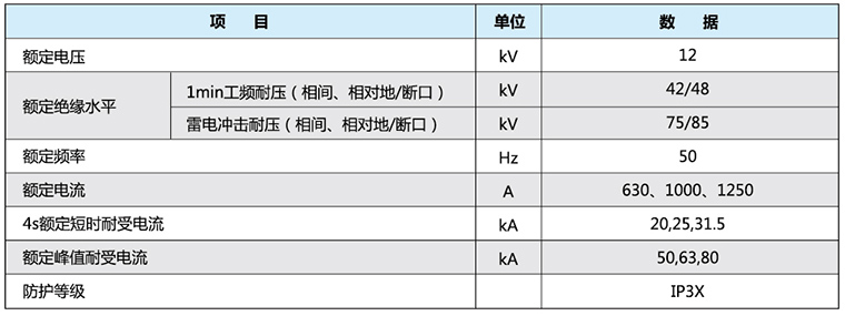 本设备的主开关采用ZN28-12系列整体式真空断路器、ZN28A-12系列分体式真空断路器以及VFY1(VS1)-12系列真空断路器,上隔离开关采用GN30-12型旋转式隔离开关,下隔离采用GN19-12型隔离开关,本设备具有可靠的五防联锁功能。